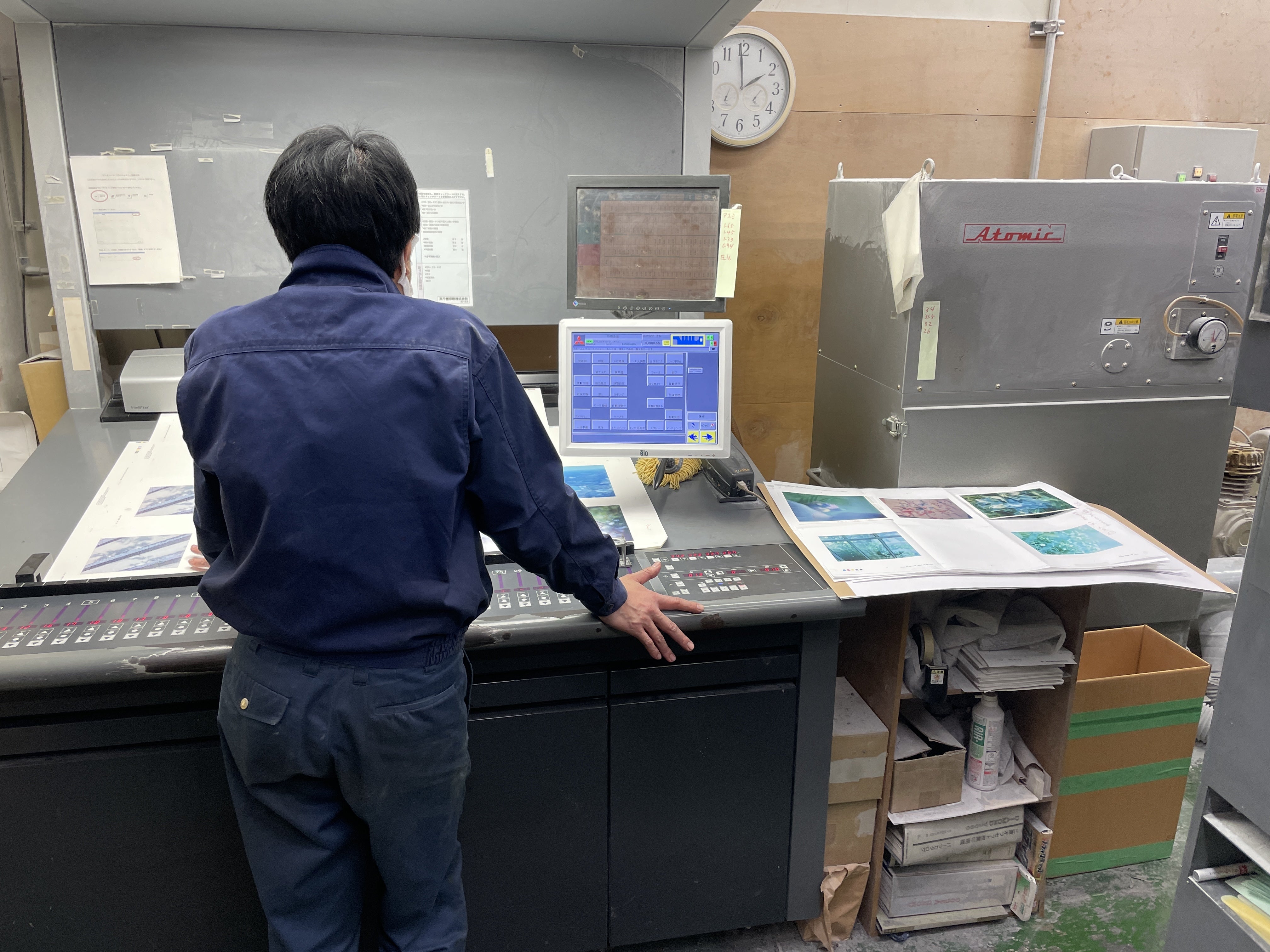 CMYKの版をセットしてどんどん刷り出して行くMITUBISHIの印刷機がカッコよかった。(元整備士の血がざわつきました笑)