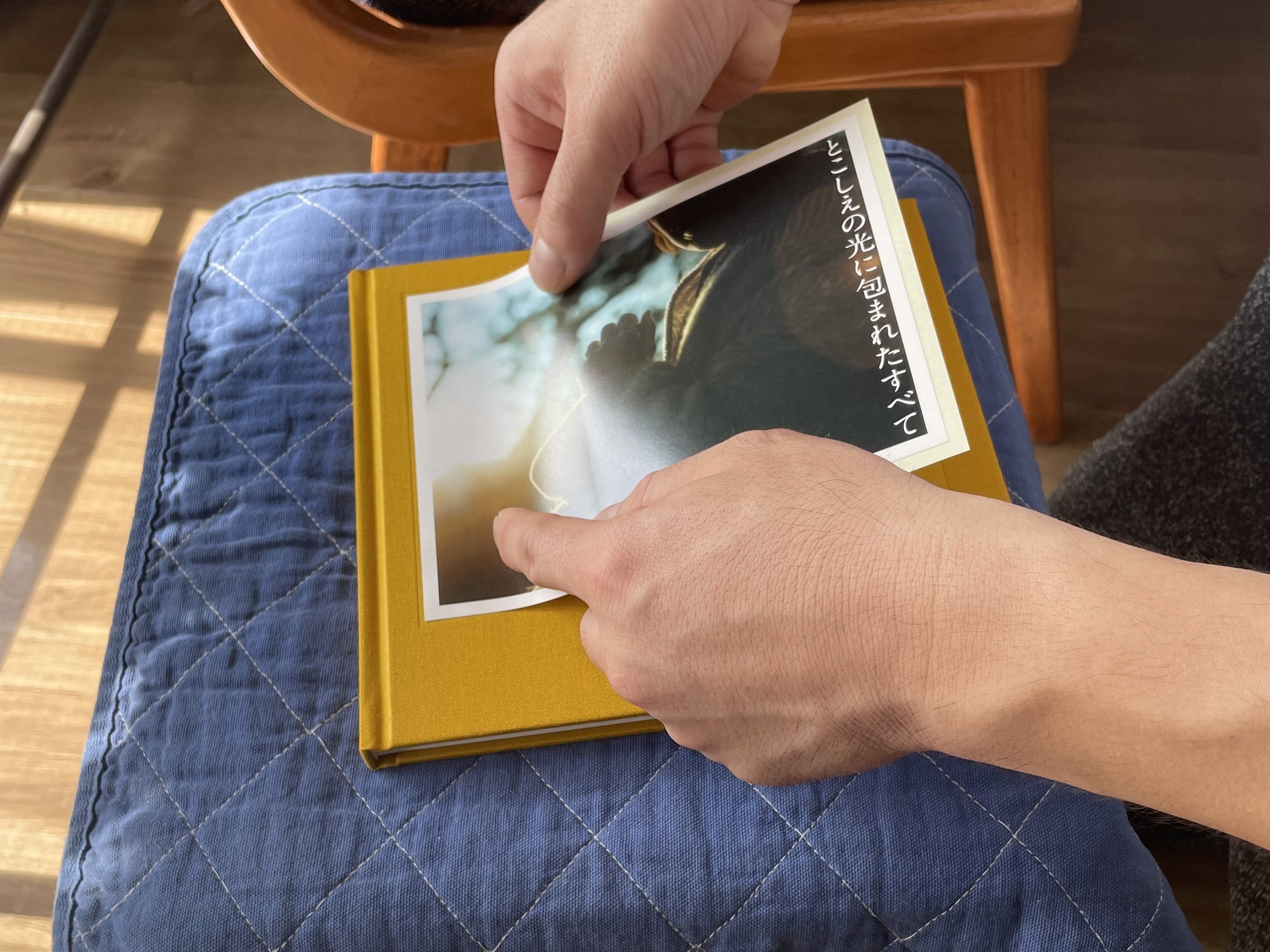 写真集が無事に完成し、予定通り2/20に我が家に届きました。表紙は題箋貼り加工と言いまして、空押ししたところへ手作業でプリントされた表紙を貼りました。最後は自分の手で完成したかったので、貼り作業はとても充実感がありました。