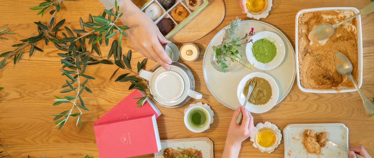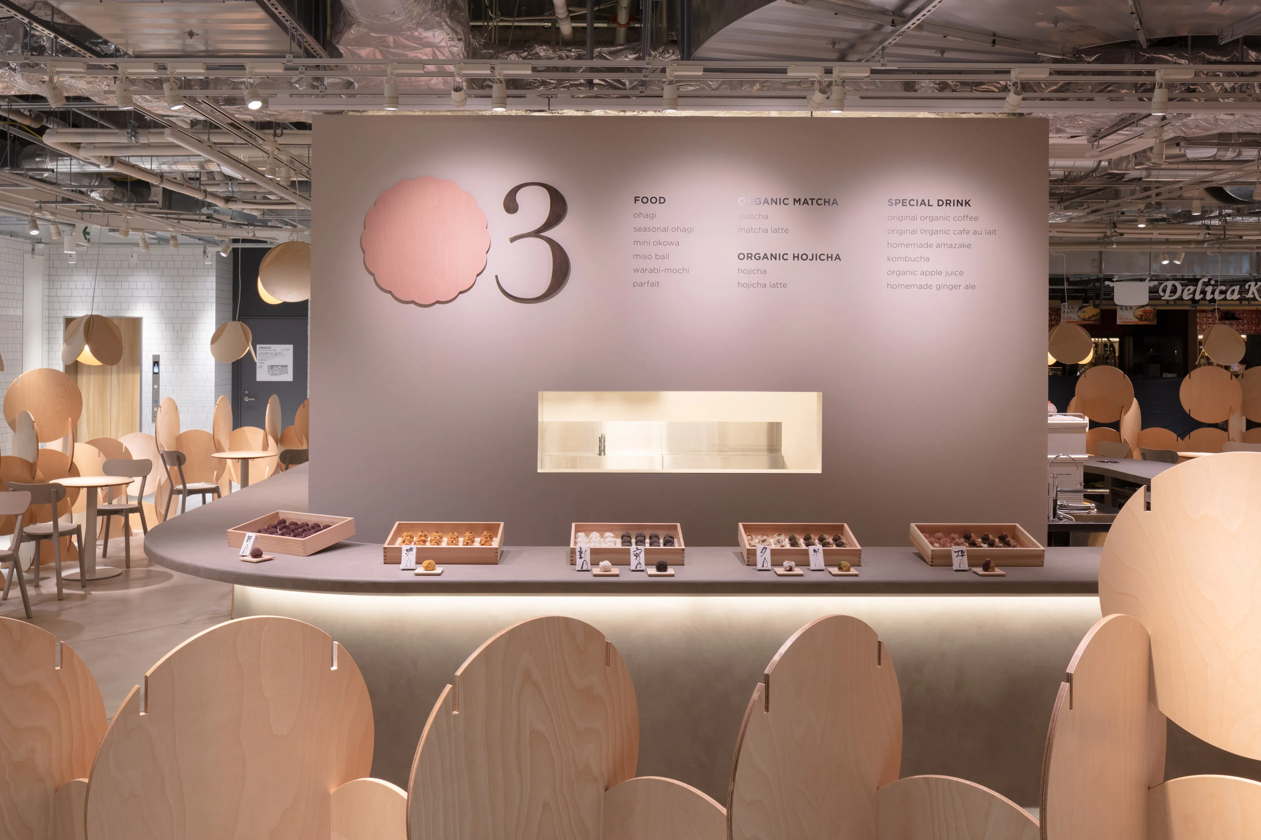 「円(縁)に埋もれておはぎを味わう、余白の時間」をコンセプトに、「厳選された食材をそのままに、毎朝手作りした自慢のおはぎ」、「和茶系ドリンク」を中心としたカラダにやさしい和の美味しさが味わえます。木のぬくもりと落ち着いた照明効果で、居心地のよい空間をお楽しみください。