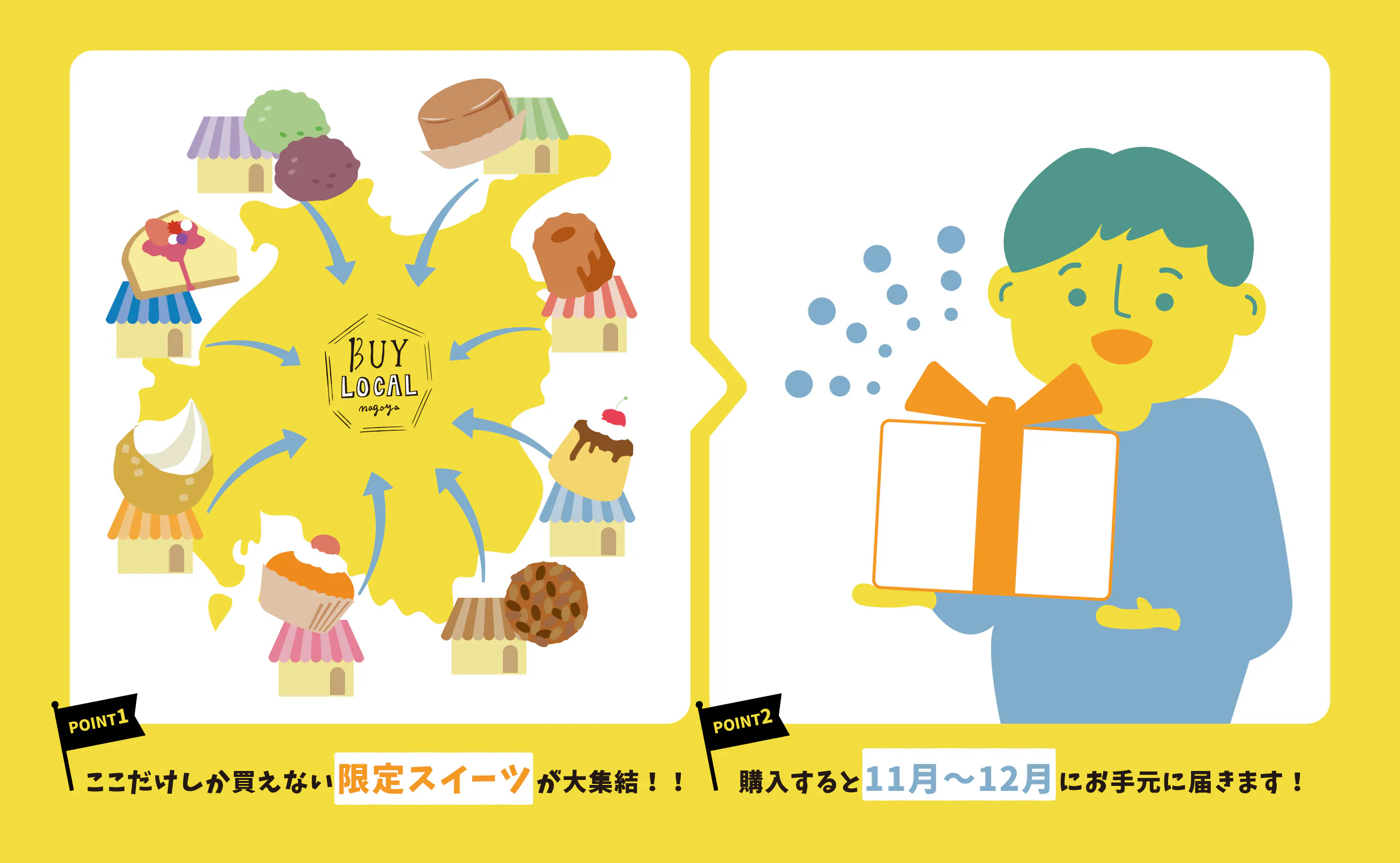 お好きなスイーツを購入していただくと、11月〜12月中に皆様のお手元に届く予定です。一つに絞ってもよし、2つ3つ頼んでもよし、8店舗コンプリートするのももちろんアリです!