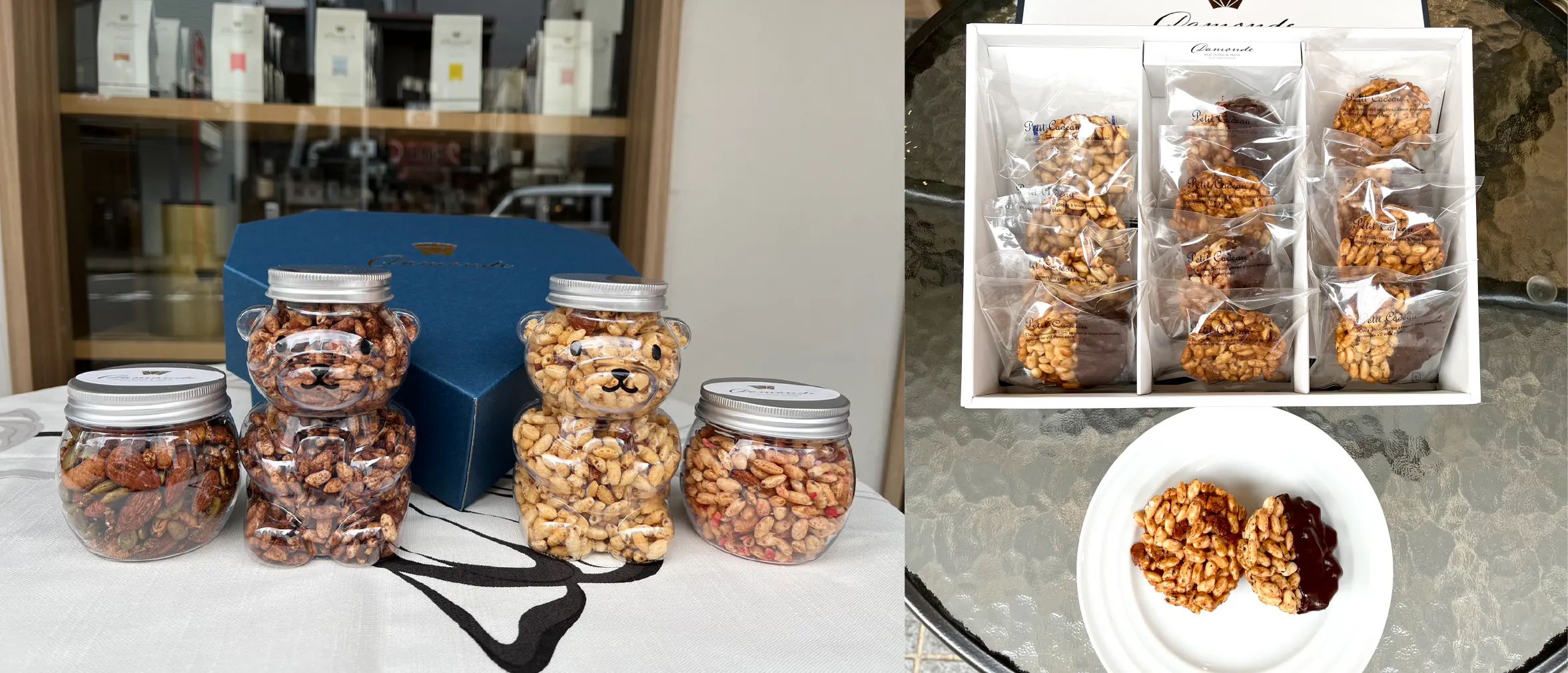 当店では全て米粉でお作りしています。通常の小麦粉を使用したスイーツとは全く区別がつかないクオリティーを再現を目指してして。今回は完全限定販売の米粉スイーツと、地元東海地方(岐阜県多治見市産)の紅葉(もみじ)を使った米粉スイーツの提案をさせて頂いています。