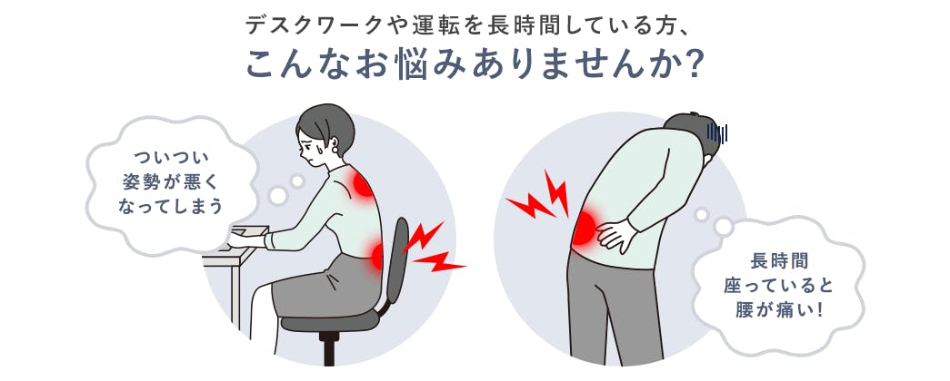 毎日のデスクワークや長距離運転などが多い方は座ることが多く、姿勢がどうしても悪い状態が続いています。