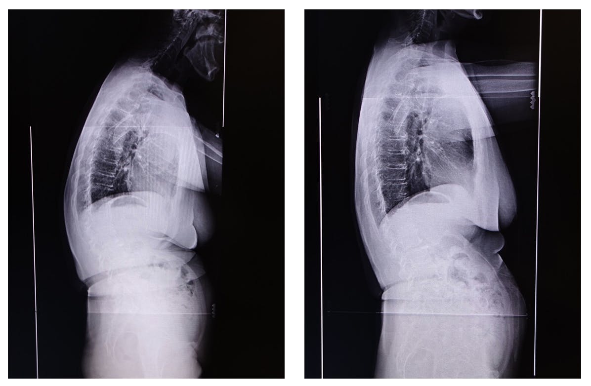 背中の曲がった姿勢が続きますと、背中と腰の筋肉が常に伸びた状態になります。放置してしまうと、進行し、中等度を超えた場合は、歩行障害、強い腰痛、時には、神経障害による下肢のしびれなどで日常生活に支障をきたします。