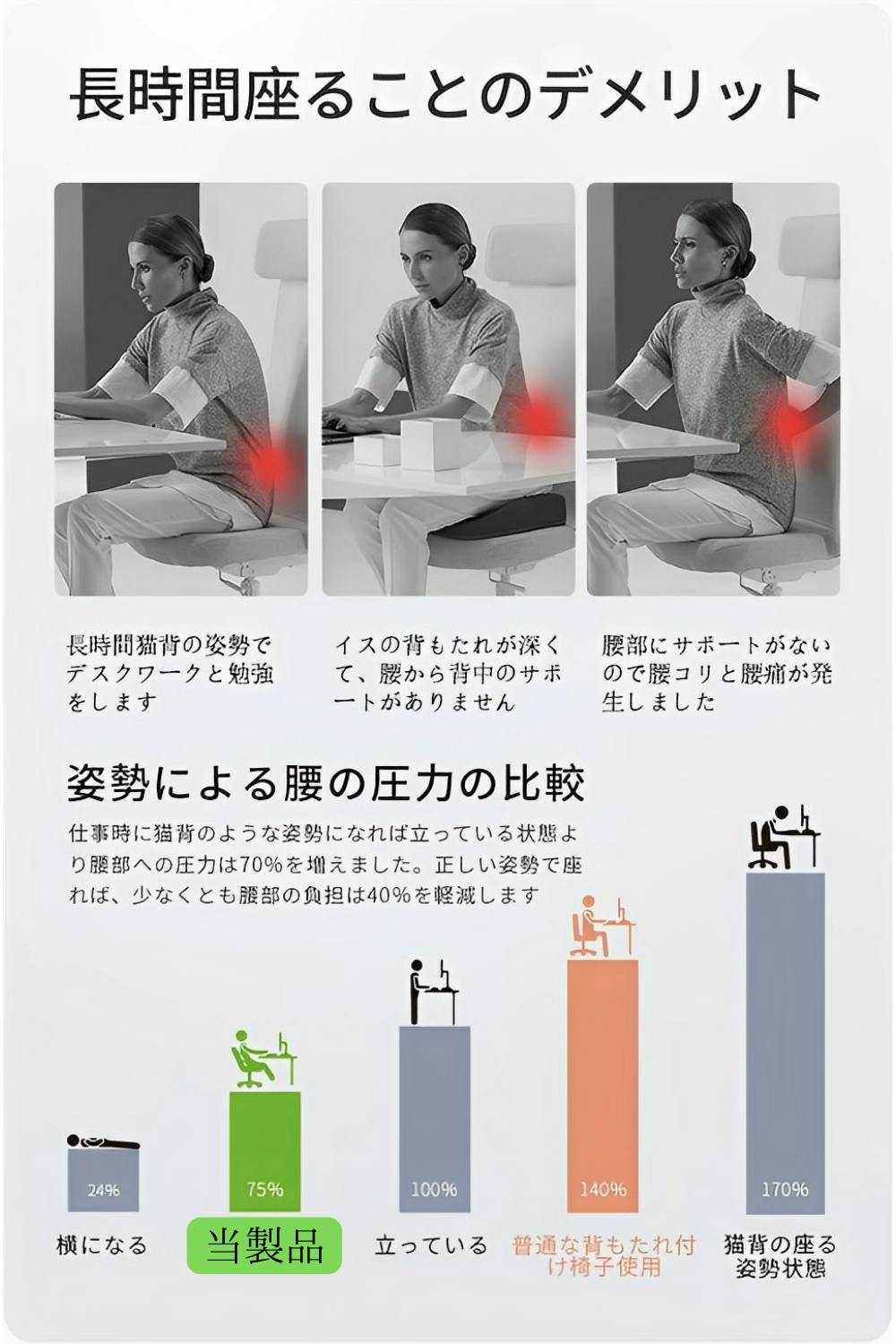 デスクの椅子、車の席などに付けて、腰痛とオサラバしませんか?