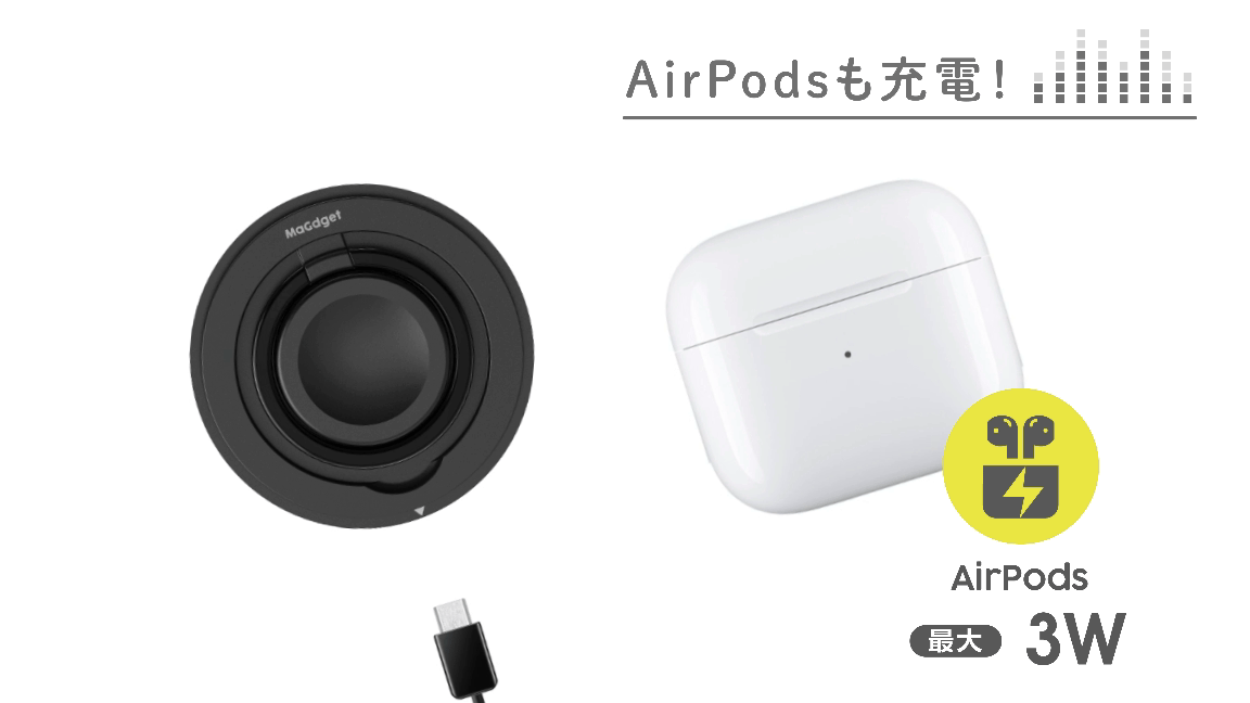 MagSafeに対応したAirPodsケースをお持ちであれば、AppleWatchとの同時充電も可能になります。