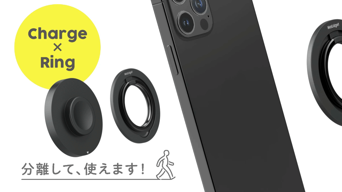Ring(ホールドリング)はCharge(充電)部分からマグネットで着脱ができるため、MagSafe充電が不要な場合はRingのみをiPhoneに吸着させて、通常のホールドリングとしてご使用いただけます。