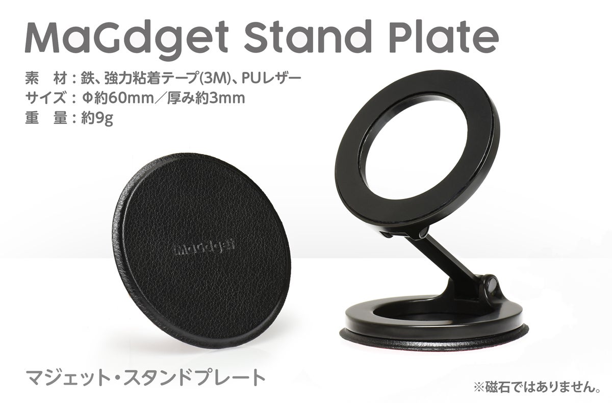 MaGdget Stand Plateをお好きな場所に貼付いただくことで、磁力がはたらかない場所でもStandを吸着させることが可能になります。MaGdget Standには「MaGdget Stand Plate」と「MaGdget Support Plate」が1点ずつ付属いたします。