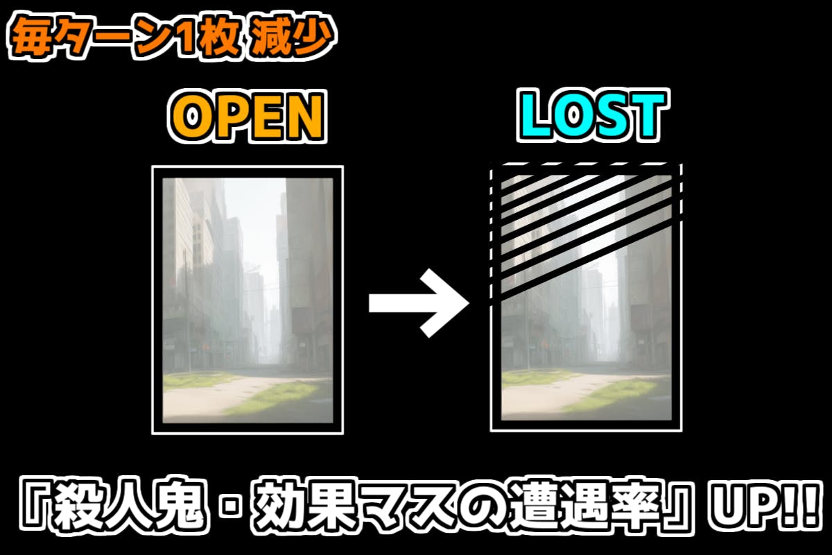 つまり、『殺人鬼との接敵率』『効果マスの頻度』がどんどん上昇し、戦いは激化していきます!!