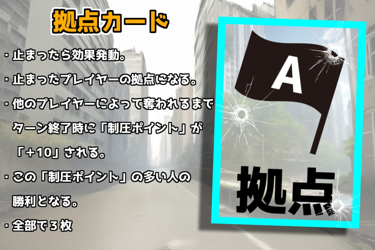 このゲームは最終的に、誰よりも多く『拠点ポイント』を獲得する事が目標のゲームです!!