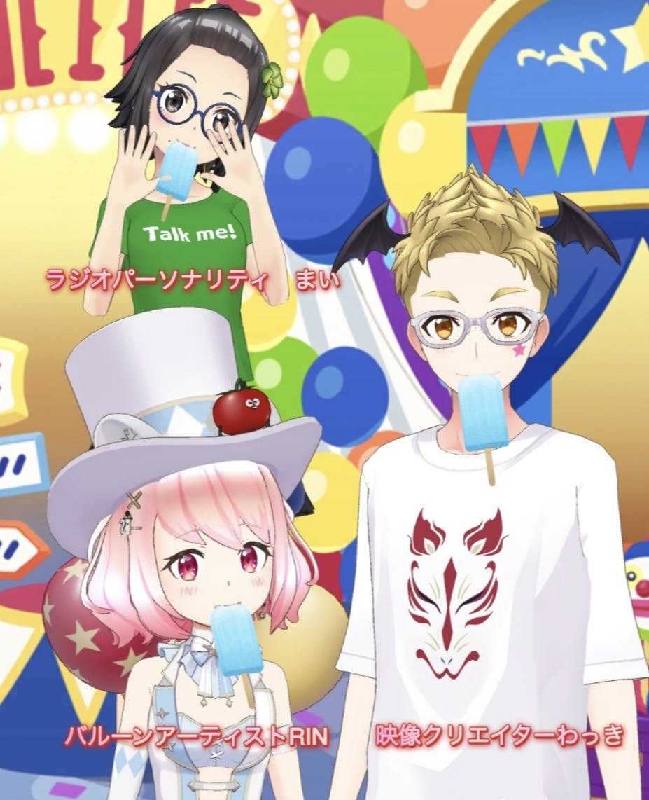 私も活用させて頂いておりますが、今回はたまたまラジオパーソナリティで活躍されているまいさんもお見かけし、わっきさん、まいさんのトリプル初コラボで記念写真を撮影させて頂きました。これからこのバーチャルの世界でも活動を報告し、応援してくださる皆様とコミュニケーションがとれたらいいなと思っております。