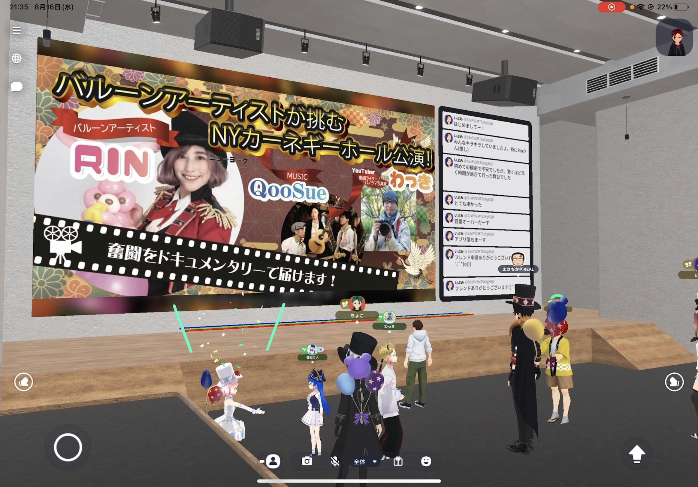 僕とRINちゃんはVRヘッドセットから入室しましたが、その他の参加者さんの殆どはスマホからのアクセスだったようです。
