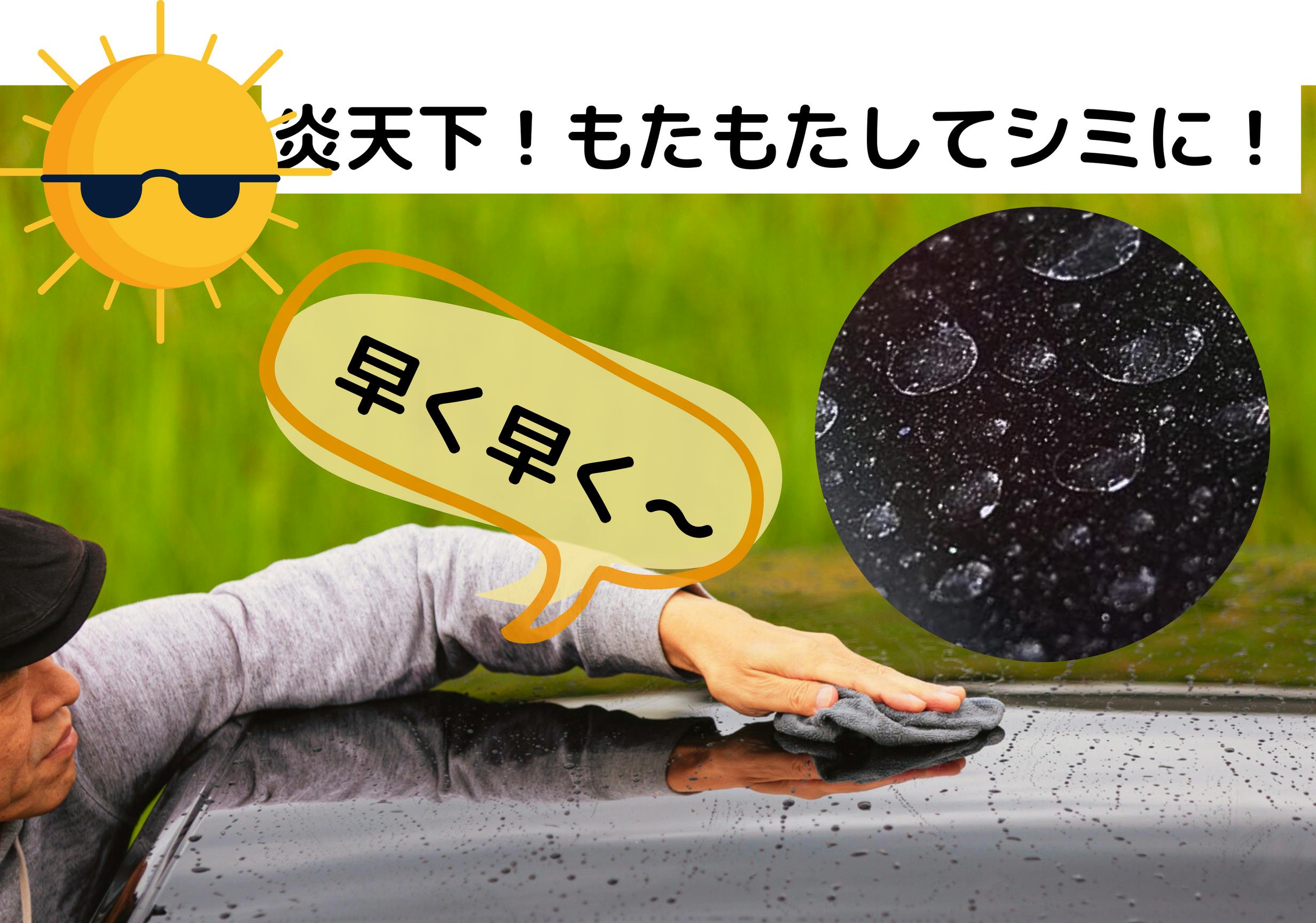 とくに夏の洗車は水滴の乾きがすごく早いので、手早く拭き取らないと、かえってシミやウォータースポットを作ってしまうケースもあります。結構失敗しがちです。