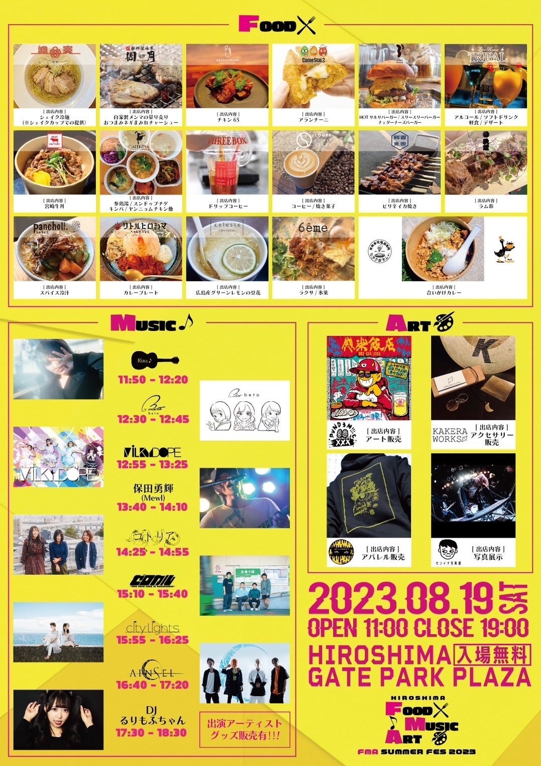 この度、今年から地元広島で複合野外イベント「FMA SUMMER FES 2023」を、制作チームの一員として開催させて頂くことになりました。