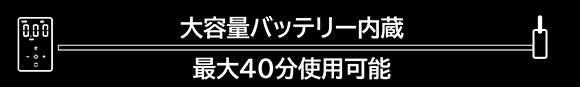 6000mAhの大容量バッテリーを内蔵し、シリンダー式は最大40分、モーター式は最大20分稼働可能です。