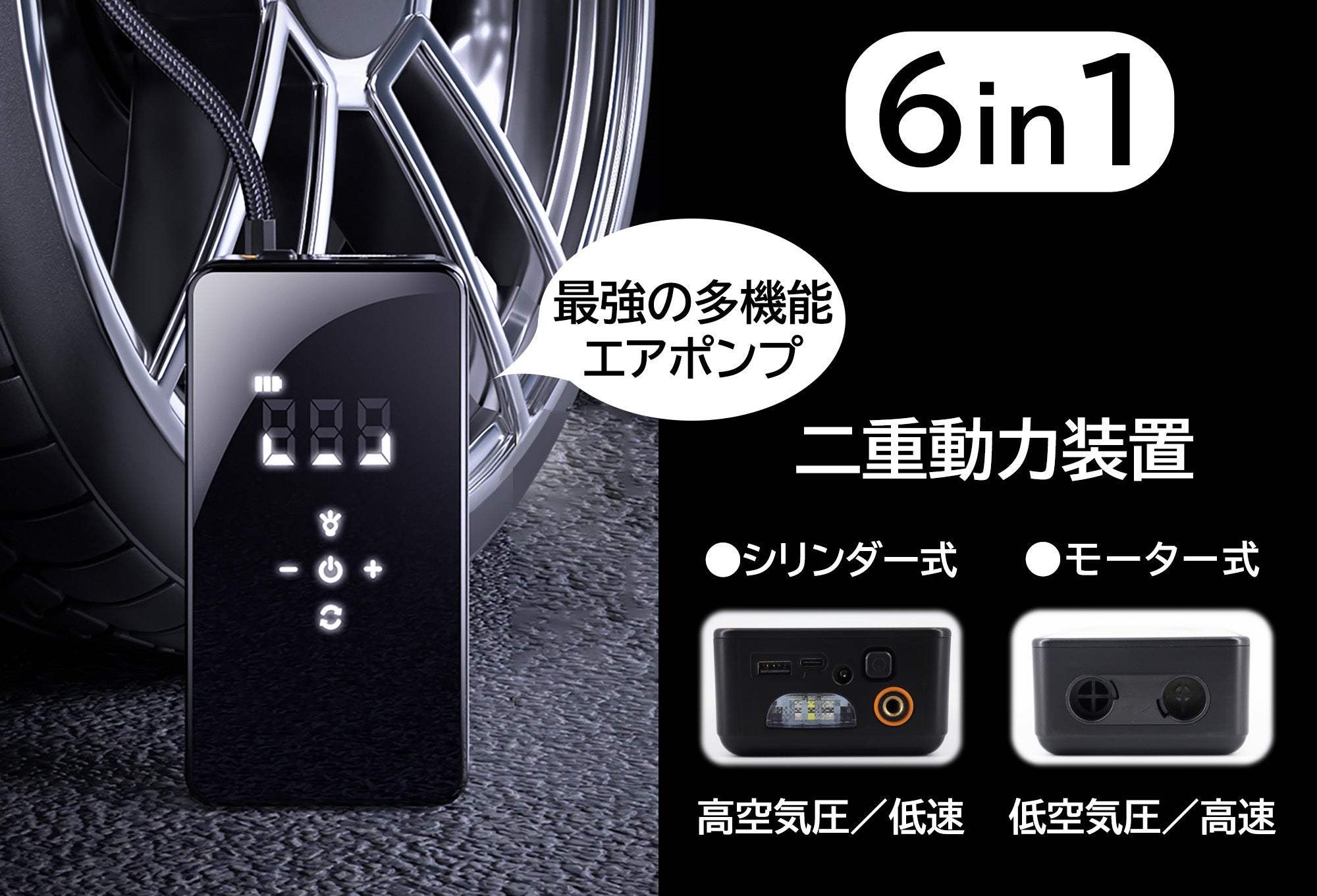一般的な車用エアポンプはシリンダー式の空気入れモードだけを持っているため、風船やエアベッドなどを充填するにはとても時間がかかります。