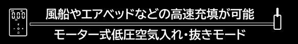 ■風船、エアベッドなどを高速で充填できるモーター式低気圧空気入れモード