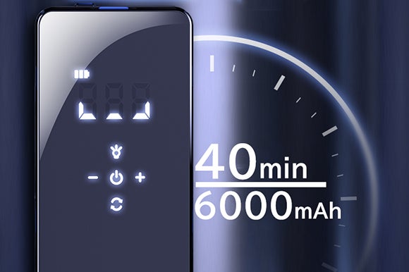 6000mAhの大容量バッテリーを内蔵し、シリンダー式は最大40分、モーター式は最大20分稼働可能です。