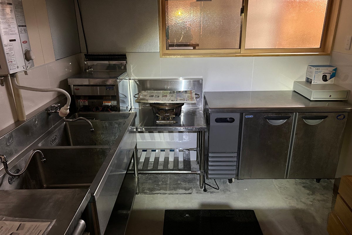当社に眠っていた設備でほぼ営業ができるという好条件。本日水道開通、あとは電気、ガスの繋ぎ込みと、冷蔵庫(最後の大物)の搬入で検査前の準備が整います。