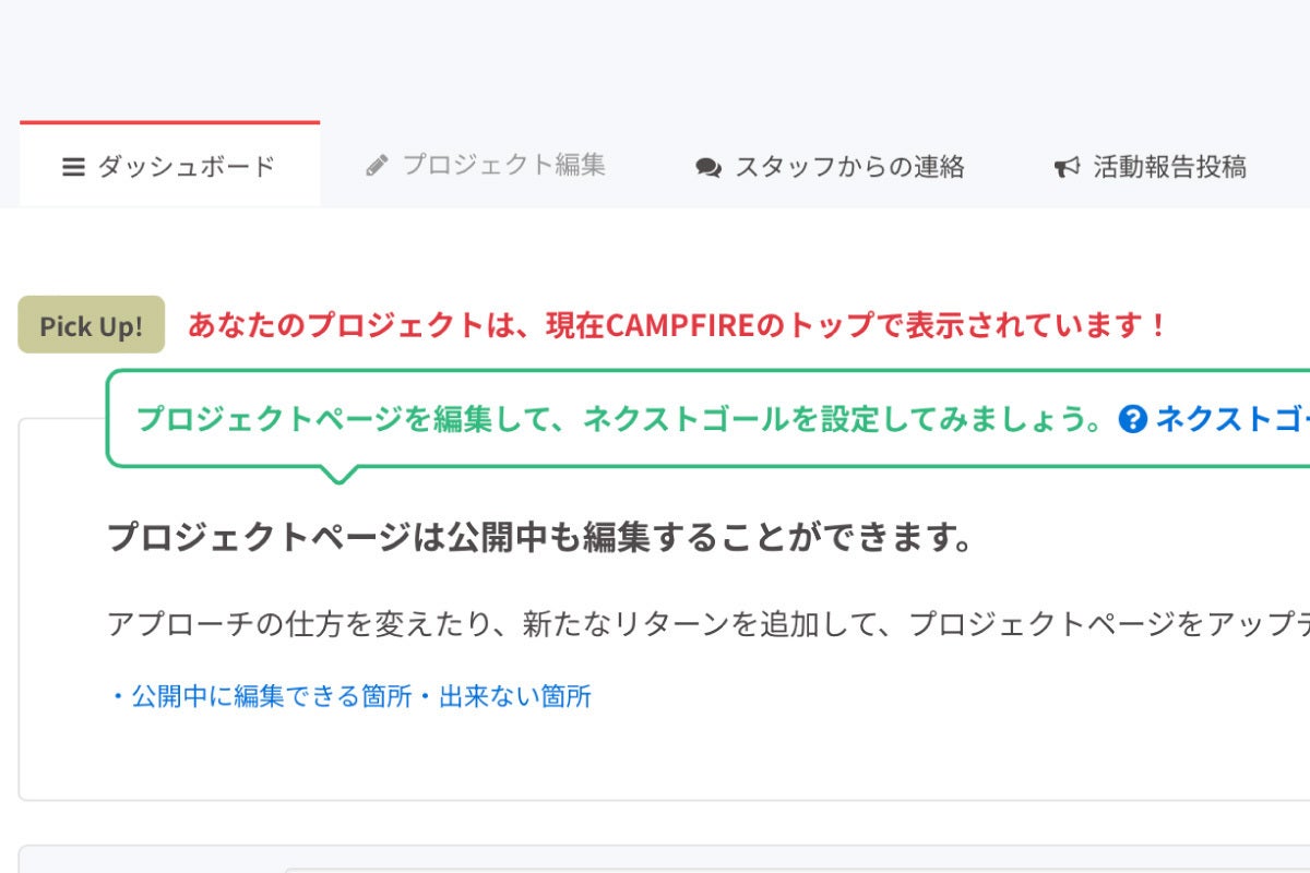 当プロジェクトがCAMPFIRE内で現在トップ表示されているとのこと!皆様のご支援がこういった形で表面化されると、さらに元気と勇気がいただけます!