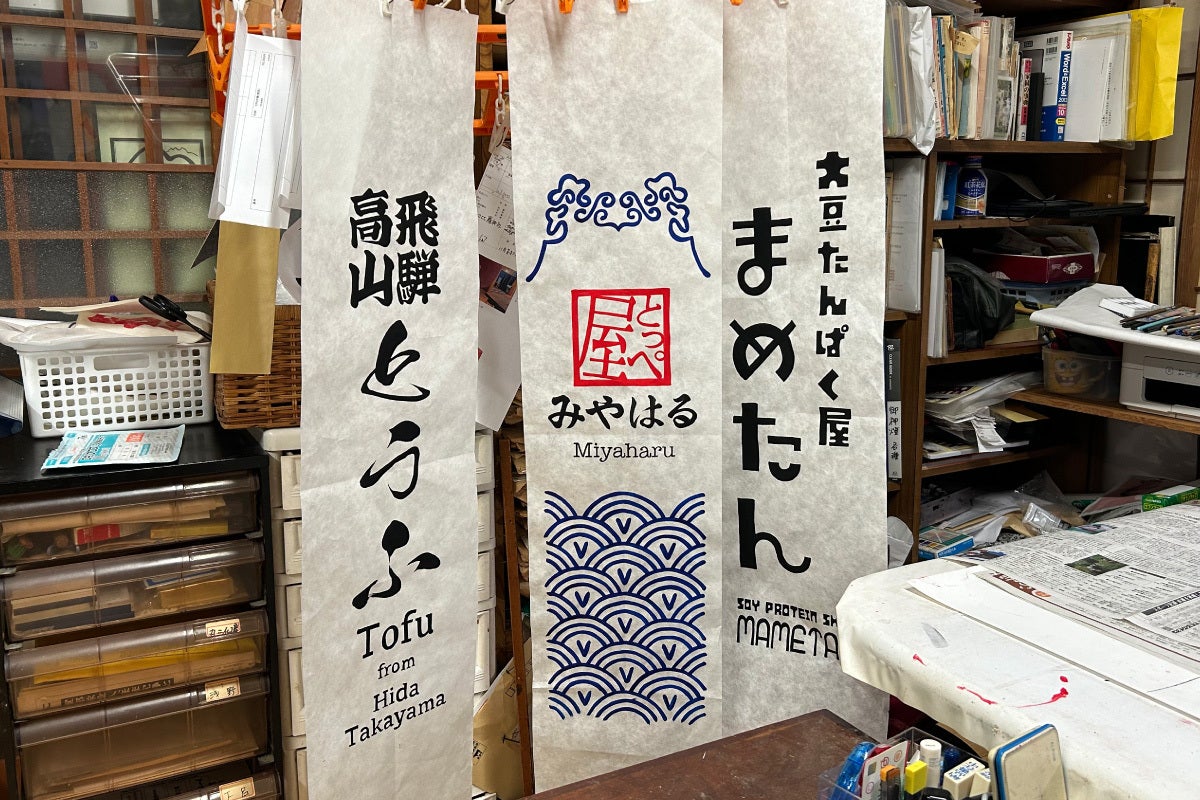 提灯看板を依頼した山下提灯さんに伺って進捗状況を確認。全て手作業という筆入れは圧巻です!次回、提灯への糊付け作業を見学させていただけることになりました!