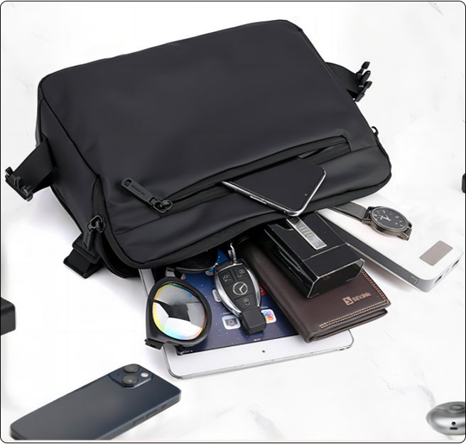 サイズは小型にもかかわらず、他製品に負けない収納量!iPadやモバイルバッテリー、ノート、傘やお財布とたっぷり荷物を収納することができます。