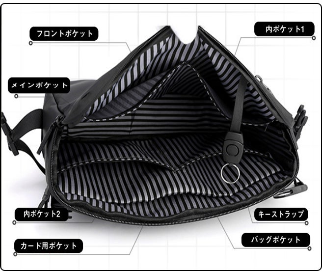 六つの収納ポケットがあるので、取り出し回数によって名刺入れの位置、財布の位置、かぎの位置など同じ収納場所にしていたら、バッグの中を見なくても2秒以内に物を取り出すことができます。