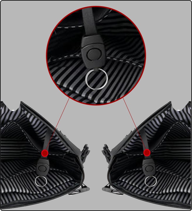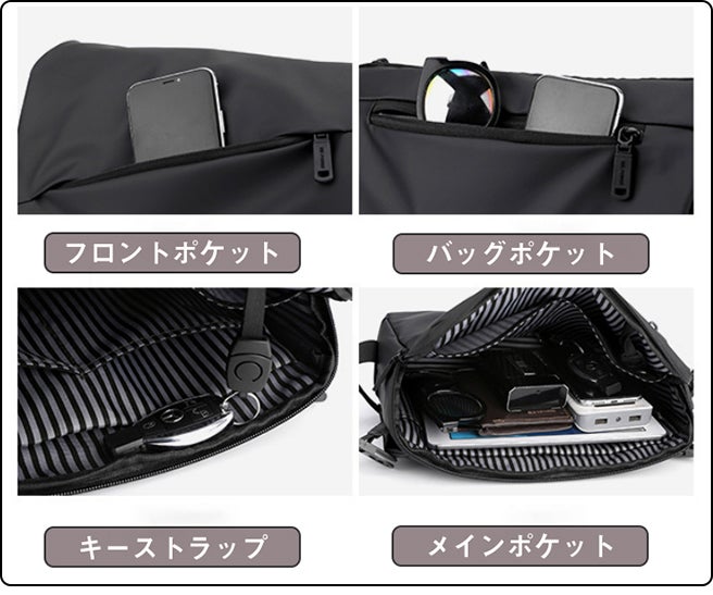 バッグのキーストラップというと、固定式はよくあります。We Powerは脱着可能なキーストラップが付いていて、鍵の管理がもっと便利になります。 また、キーストラップはフロントポケットの中に置くことができ、ポケットの ジッパーを上げて、鍵の紛失を心配する必要がありません。