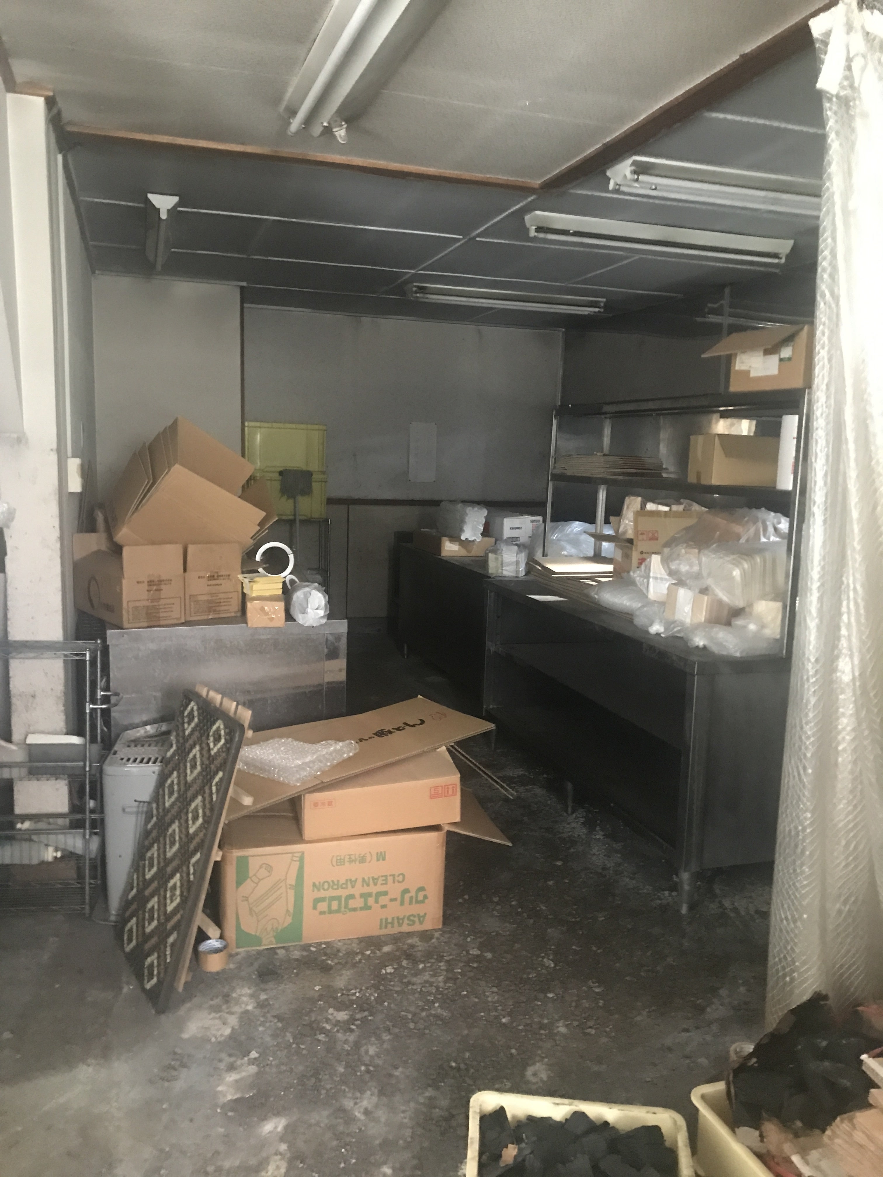 以前この建物で営業していた飲食店の物品がそのままになっていて、まずは大規模なゴミ出しと清掃が必要な状況です。