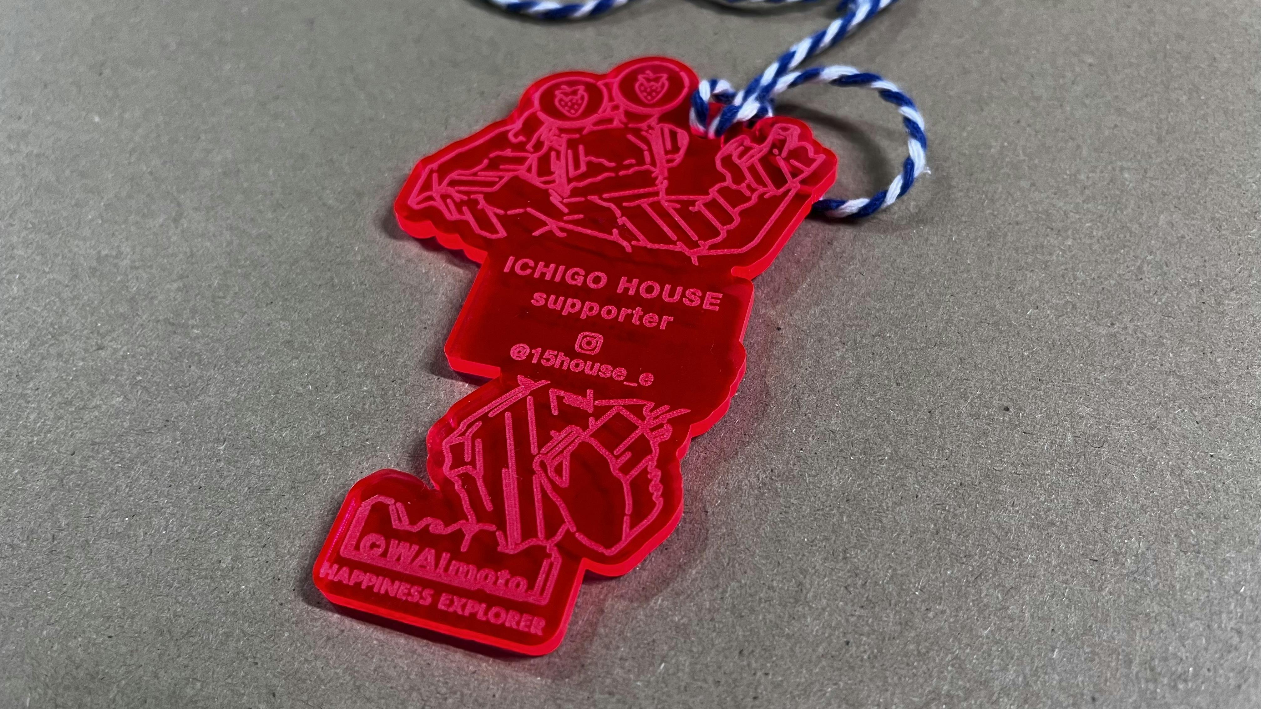 「ICHIGO HOUSE supporter」の文字と、WA!moto.の作品に登場するサルのモチーフが刻印されています。この機会にしかゲットできない限定グッズですので、お見逃しなく!