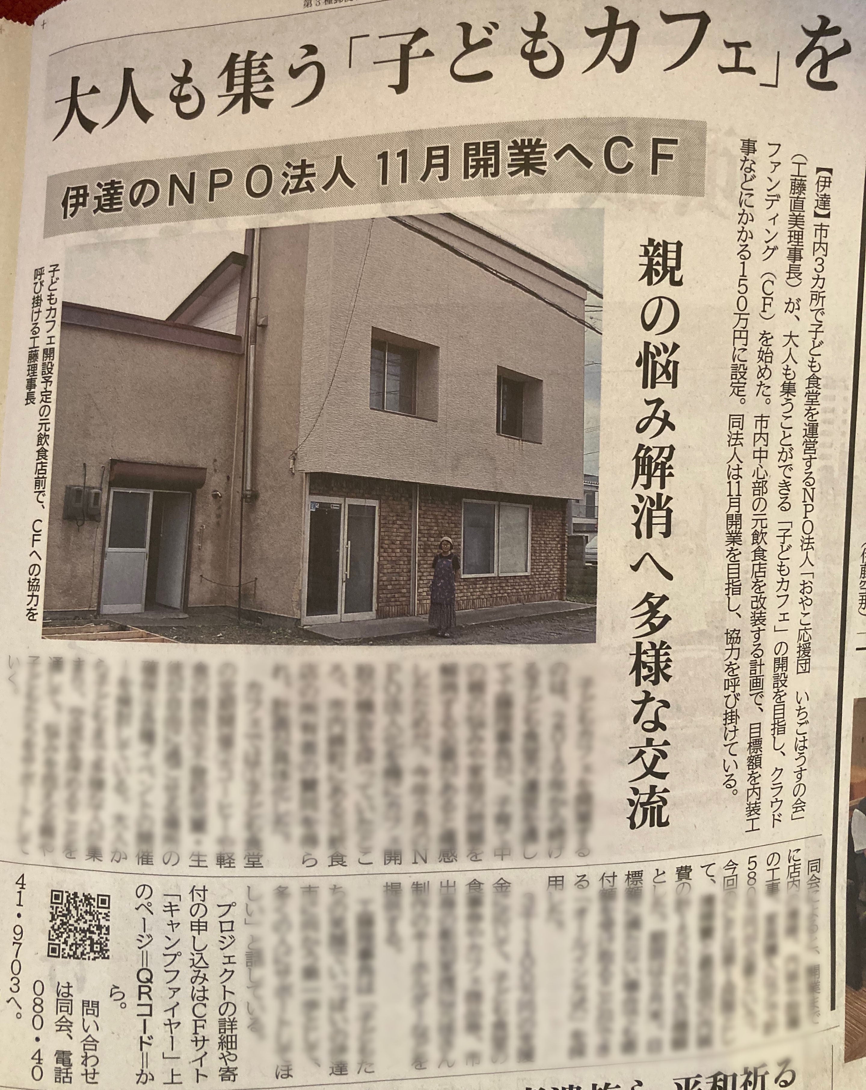 いちごはうすのクラウドファンディングをご覧いただき、ありがとうございます。また、すでにご支援くださった皆様、誠にありがとうございます!【現在の支援状況】9/27現在、1,308,000円ものご支援をいただいております。目標額1,500,000円まで、あと少しとなりました!また、クラウドファンディング以外でも直接のご寄付をいただいております!---トップ画像・タイトルにもある通り、9/27の室蘭民報さんに掲載していただきました!クラウドファンディングの残り期間は短いですが、ご支援いただけますと幸いです。また、クラウドファンディング終了後も、イベント等でこどもカフェの準備を皆さんと一緒に進めていければと思っています。引き続き、ご協力のほどよろしくお願いいたします!