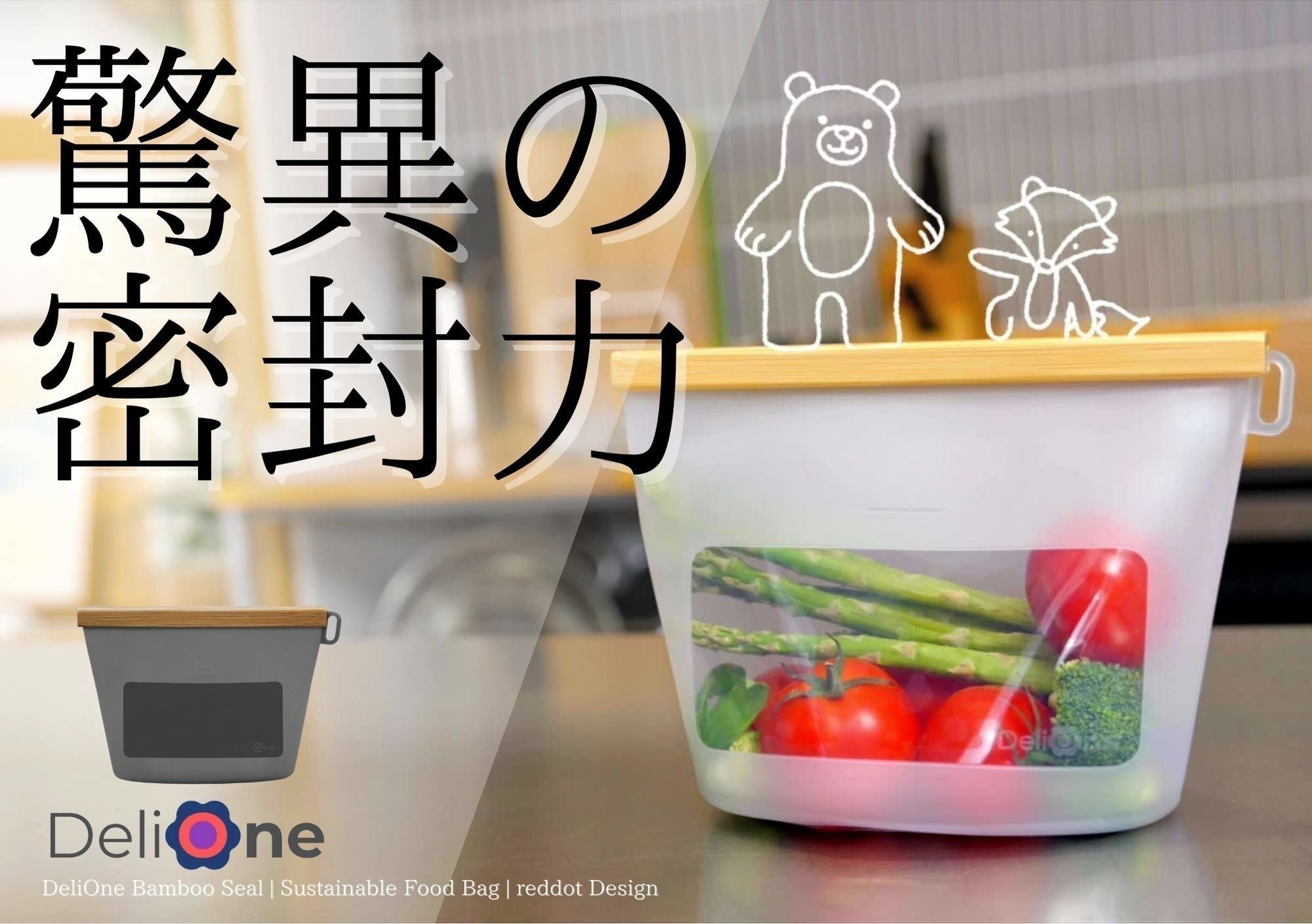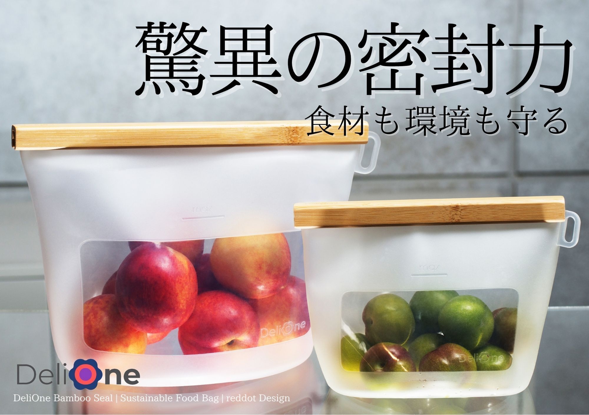 Delioneフードバッグは従来の一般的なシリコンバッグと違い、竹のスライダーバーで物理的にしっかり閉じることでモレを徹底的になくしました。また、酸素が入り込みにくくなることで食材の酸化の進行を防ぎ長持ちさせてくれます。
