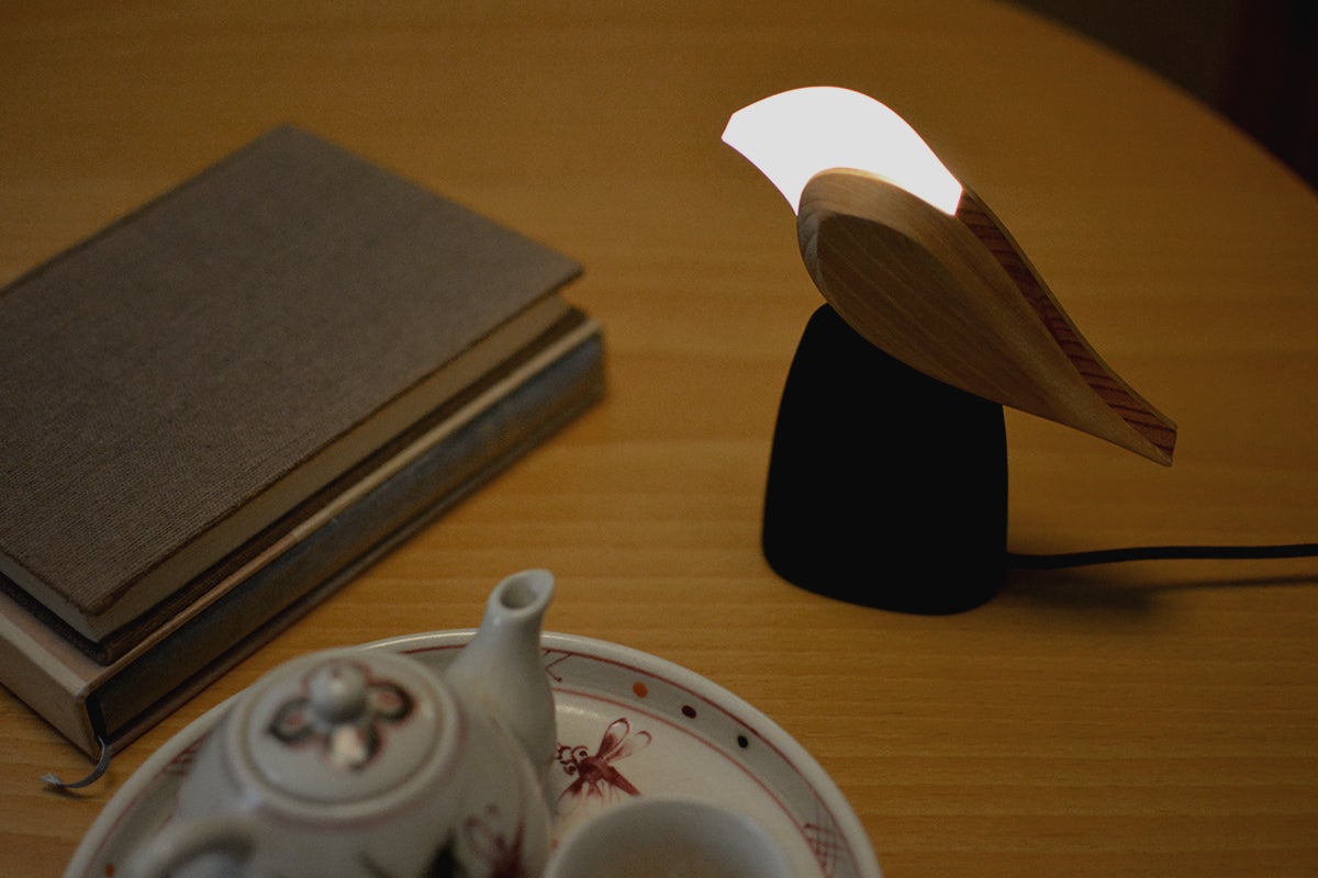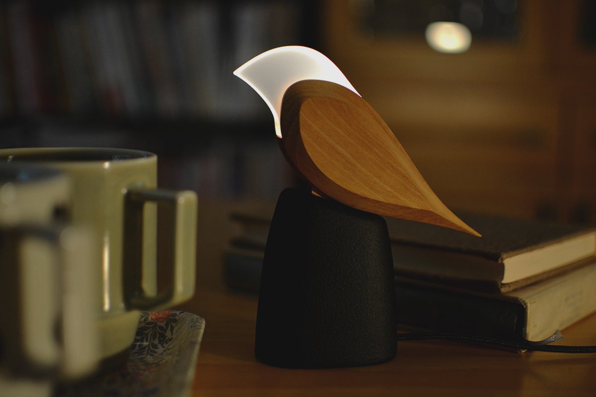 一つは木製でありながらメカニカルな印象やスピードを感じさせるデスクランプ、そしてもう一つがKotoriランプです。