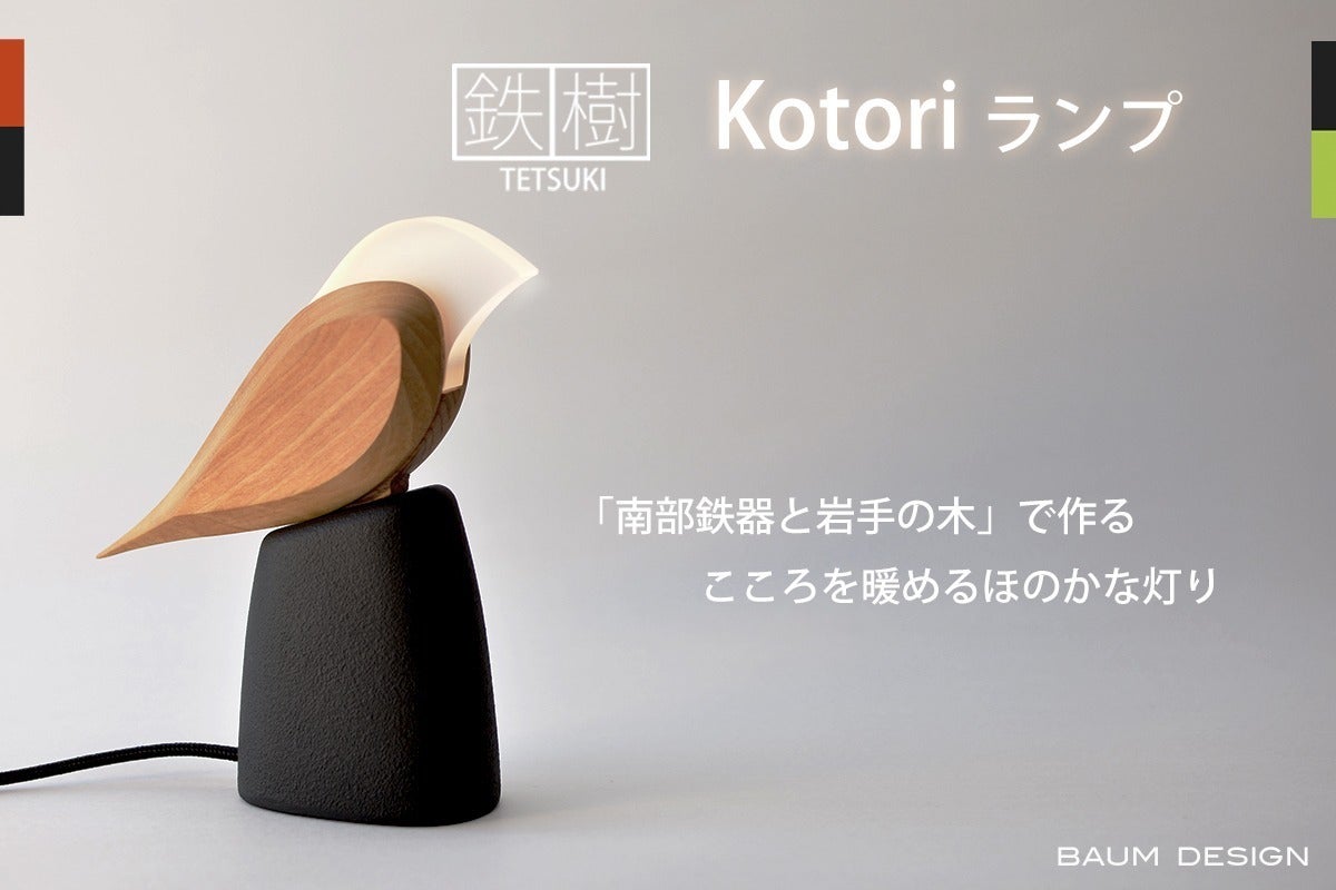 ”南部鉄器と岩手の木”を用いて、モダンなインテリアプロダクトを目指す「鉄樹」シリーズ。 これまで個人のプロジェクトとして試作を進めてきましたが、試作品の展示で好評をいただいた「Kotoriランプ」の商品化を目指しています。皆様のお部屋で暖かい光のオブジェをお楽しみください。
