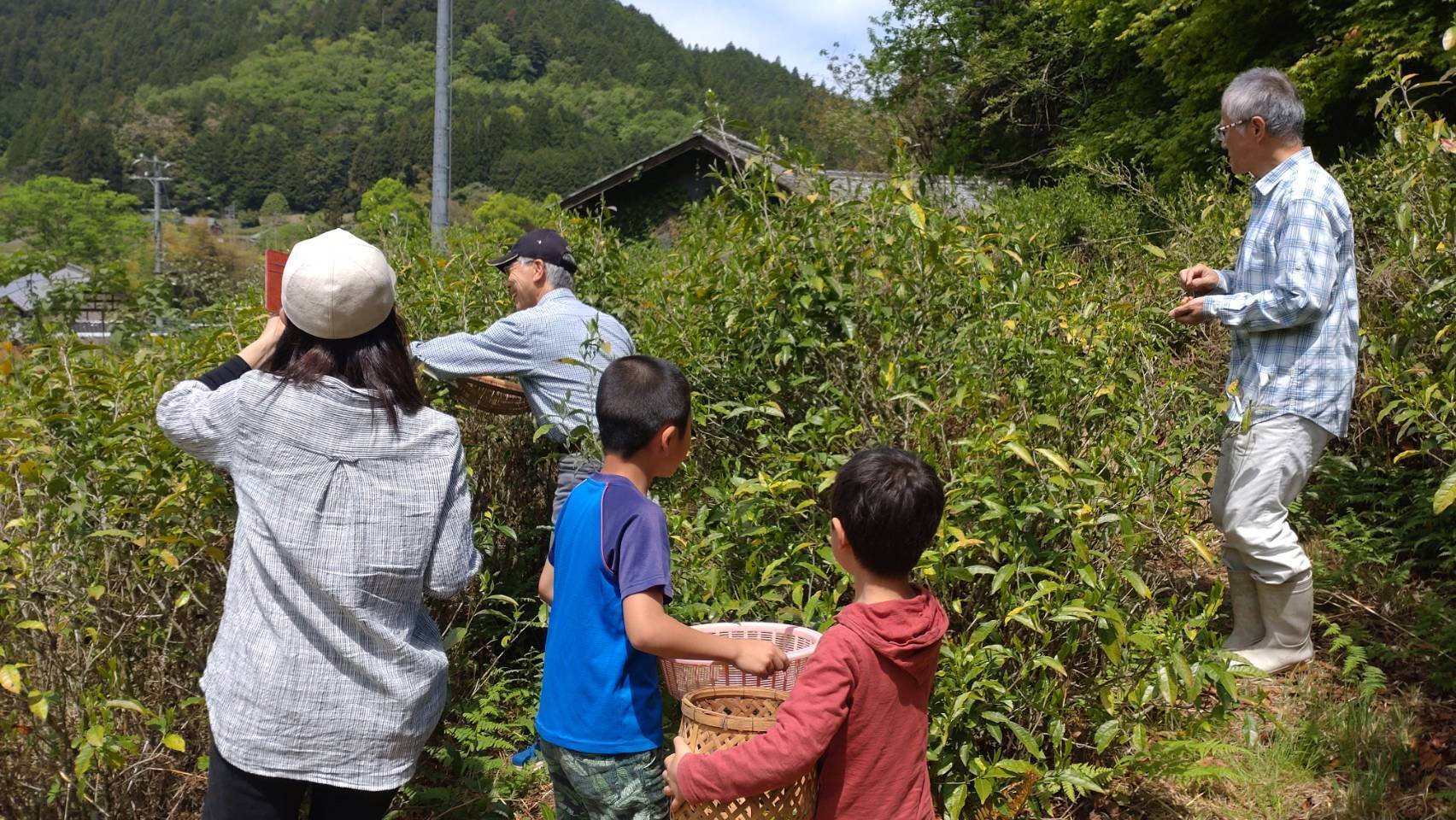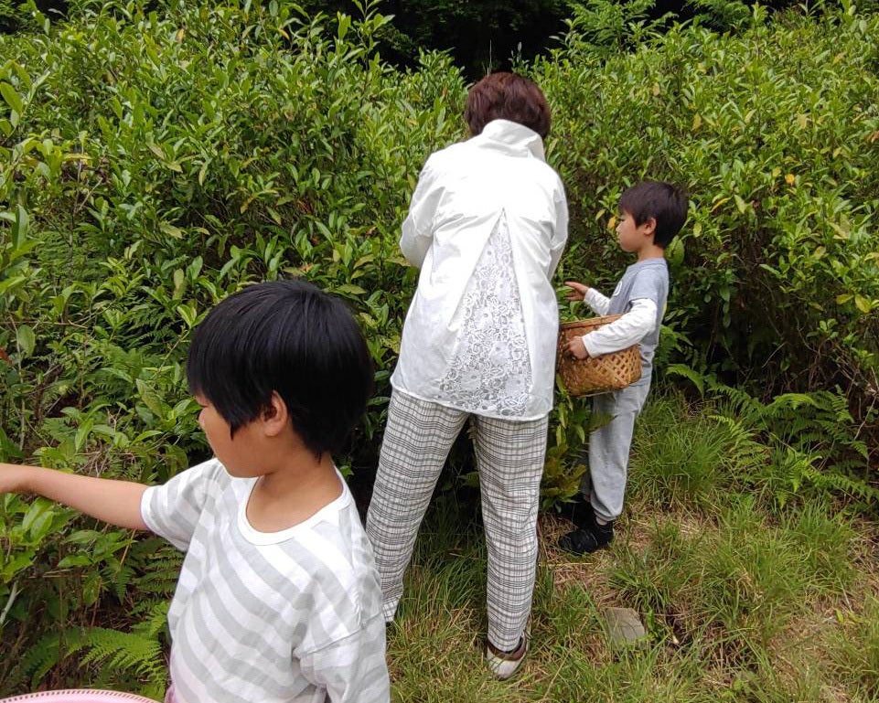 ボランティアの方との「お茶の葉摘み」。