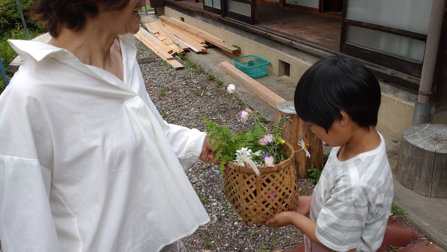 じゃあさの周りを歩いて、草花を摘みました。