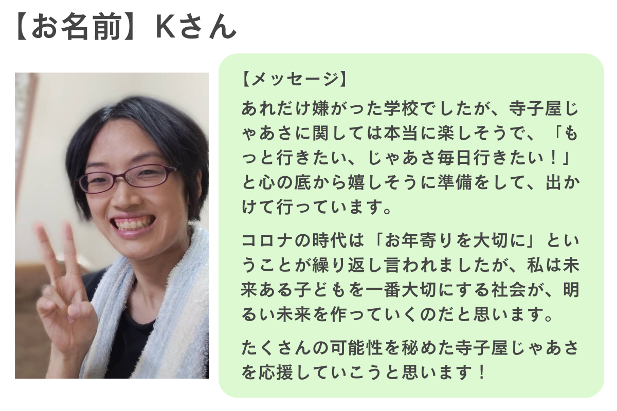 こうした学び場を創るために一念発起して、「寺子屋じゃあさ」を設立しました。