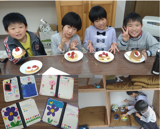 2024/04/10 09:18寺子屋じゃあさも、令和6年度が始まりました。新一年生がひとり加入し、4人で年度初めになりました。出席簿を新しくしてみんなに配りそれぞれが自分らしいノートにデコレーションしました。お昼ご飯は、「そうだ!今日は秘密基地で食べない??」っていう提案に乗って自由な場所で食べました。午後は事始めのお祝いにパンケーキでお祝いです。子どもたちとの会話はとっても楽しくて、どの子もキラキラとした可能性の塊だと改めて感じました。この一年、子どもたちの芽がどう膨らんでくるのか、またレポートしますのでお楽しみに! もっと見る