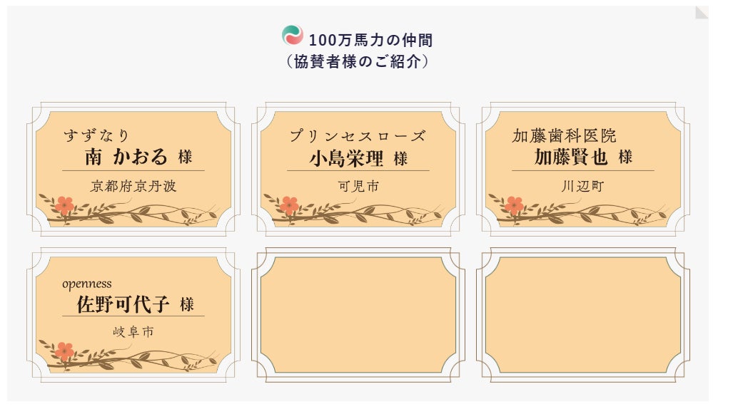 前回、ご報告したのですが、佐野様のお名前を不掲載という失礼をしてしまい大変申し訳ありませんでした。