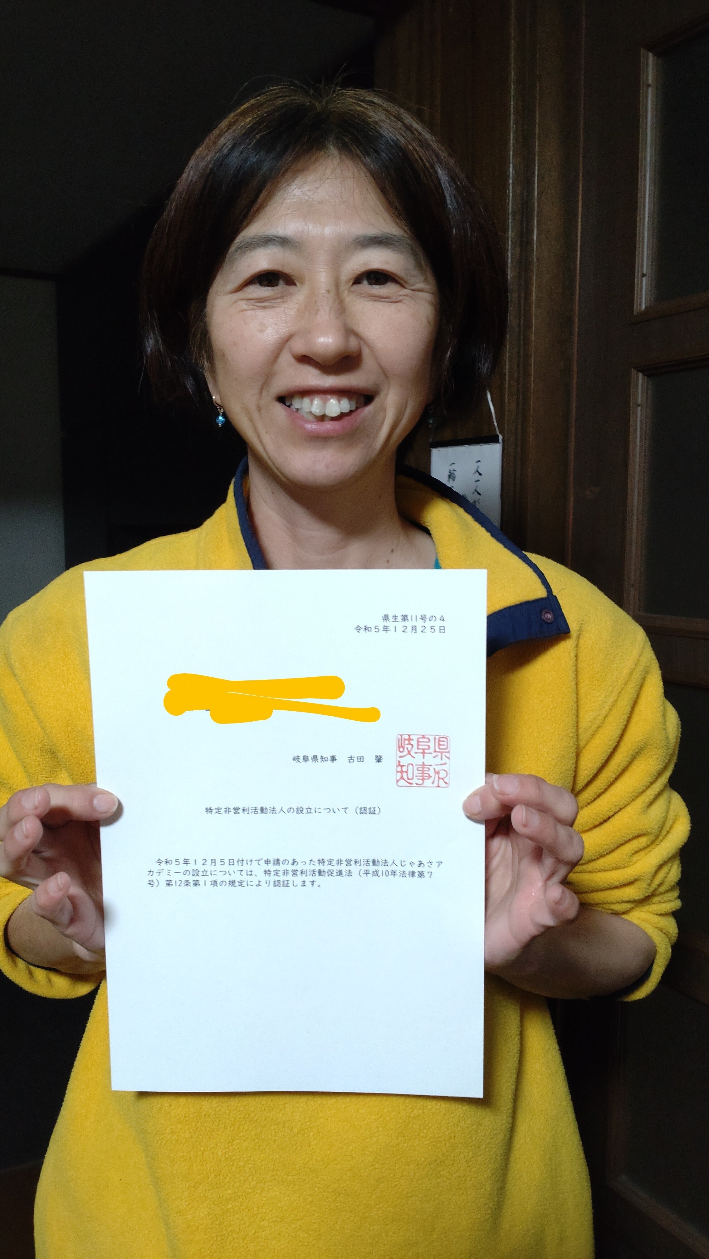 令和5年の5月より岐阜県加茂郡七宗町でフリースクール「寺子屋じゃあさ」の運営を始めました。当初は私の個人的な活動から始めましたがNPO法人設立に向けて賛同者を集め徐々に態勢を整えてきました。9月からは任意団体「じゃあさアカデミー」として引き続き活動してきました。並行して手続きを進め、県へ申請していたNPO設立も無事に12月末に認証がおり、1月早々に法人登記する運びになりました。