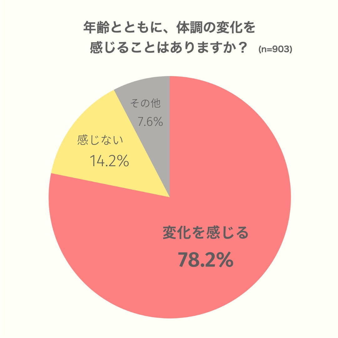 (2023年7月クラシエ調べ)実際に、クラシエが30〜50代の女性903人を対象に行った調査によると、「年齢とともに、体調の変化を感じることはありますか?」との質問に対して、「変化を感じる」と答えた方が706人(約78%)もいらっしゃいました。今までと同じ生活をしていても、なんだかバランスが乱れてしまっているなと感じる方が多いようです。