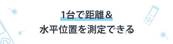あちこち動き回る必要なく、直線距離、面積、体積、水平位置などを簡単に測定できます。地形の凹凸や障害物などがあっても、高精度で必要な数値を知ることが可能です。