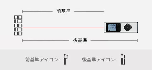 測定を行う場所や対象物に合わせて、測定の基準線を前後に切り換えることができます。