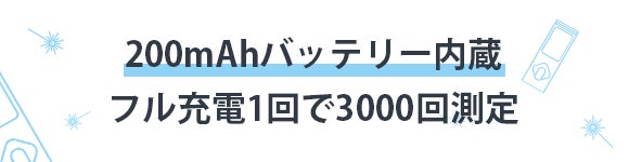 200mAhのリチウムバッテリーを内蔵しており、フル充電1回で最大3000回測定可能です。