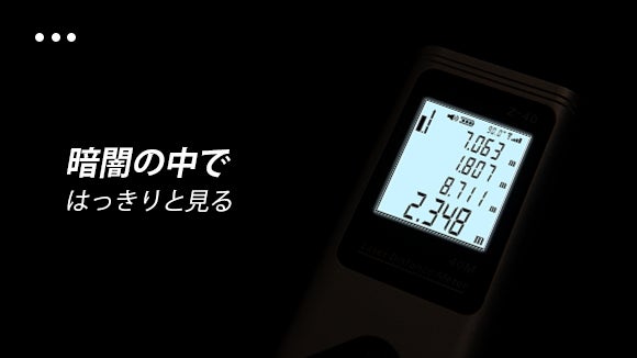 A1:z-40ポータブルレーザー測定器は、上部のレーザー照射器にあるレーザー距離測定エンジンで0.03~40mの距離を測定することができます。さらにミリメートル単位の精度を持つ光学システムがレーザーシグナルを迅速に受け取り、長さだけでなく、面積、体積、ピタゴラス、角度などのモードで様々な数値を測定することができます。