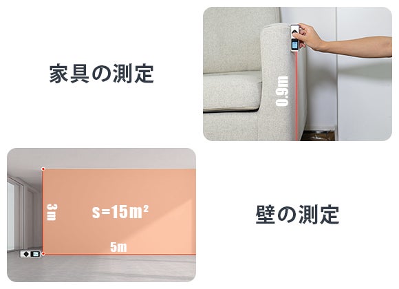 z-40が測れるのは直線距離だけではありません。面積や体積の測定から、ピタゴラス測定まで可能ですので、部屋の面積や家具の大きさなどを楽々測ることができます。