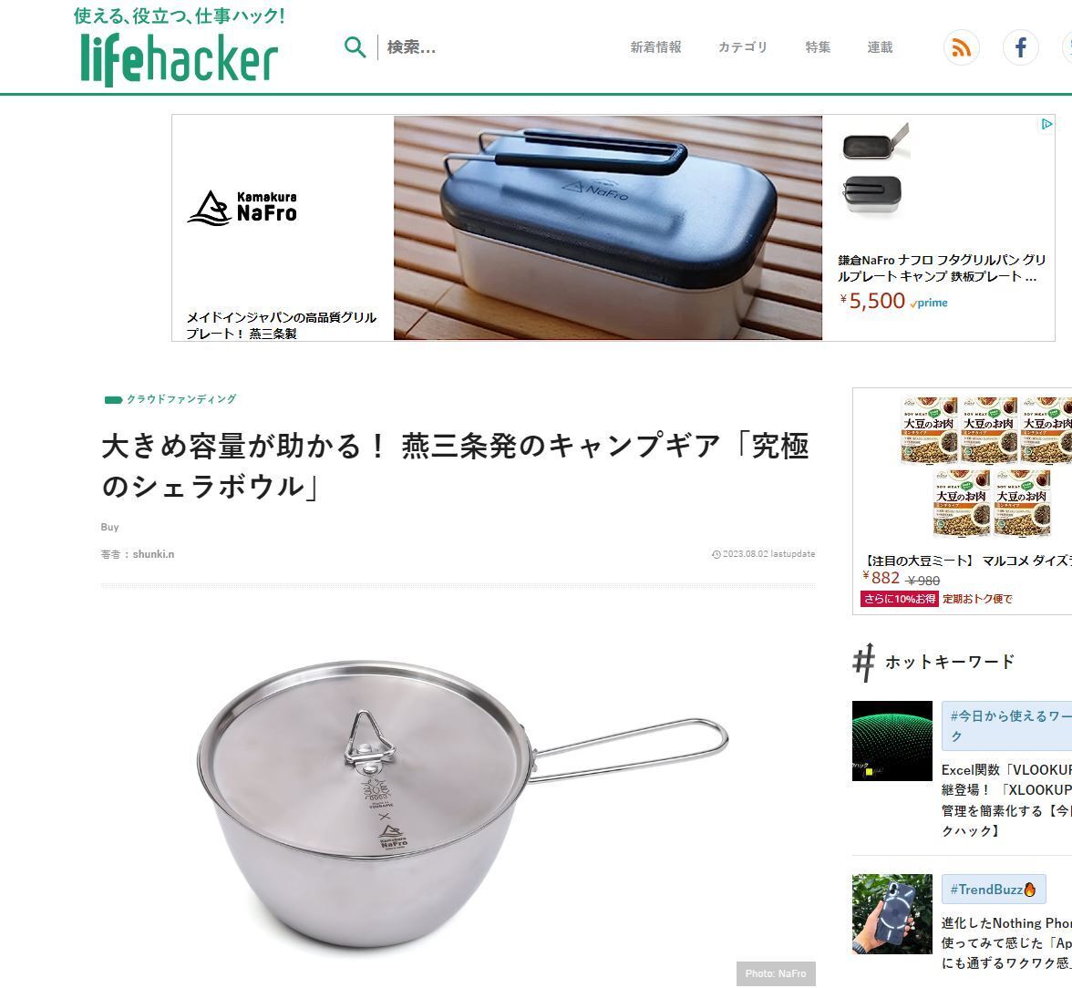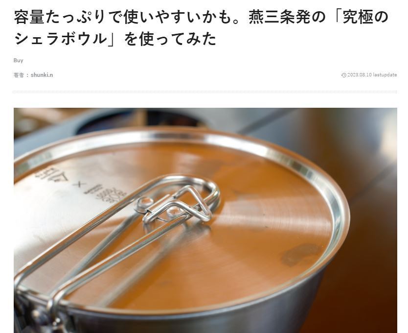 いつもご支援ありがとうございます。人気のWebメディア「ライフハッカー」さんに究極のシェラボウルを取り上げていただきました。クリックして記事を見てみる