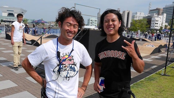 (写真:本大会のオーガナイザー内嶋氏との2ショット) 本日は、横浜の象の鼻パークにて行われたイベント『Red Bull Pump Jam』に、招待枠の選手として参戦してきました! 会場に到着するなり、本日のMCアリー氏が「8mスタートヒル建設プロジェクト」の事を話してくれて、アピールの場を設けて頂きました!嬉 この大会でもアピールの場を設けてくれた『Red Bull』さん、この大会のオーガナイズを担当した元MTBダウンヒル日本チャンピオン内嶋氏、どうもありがとうございました! 栗瀬裕太