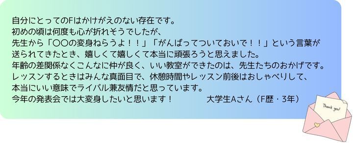 そんなFにとって、大きな舞台での発表会へのチャレンジはこれが2回目。