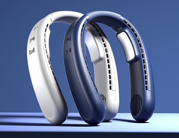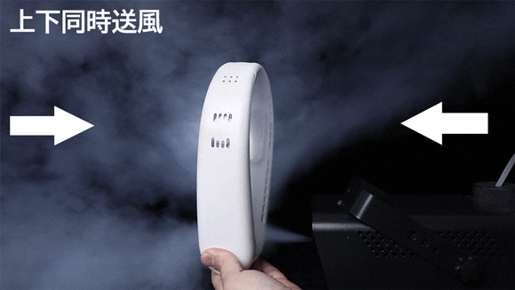 頭だけに送風できる一般的な首掛け扇風機とは違い、「FLAKE」は上下同時に送風できる設計を採用しています。