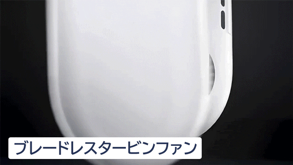 両端には強力なブレードレスタービンファンを2つ搭載し、強力な送風を実現。